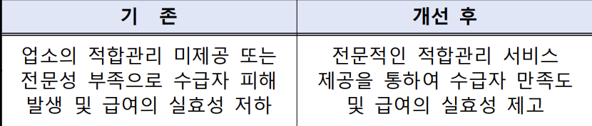 • 수급자는 장기적인 사후관리까지 보장받을 수 있음